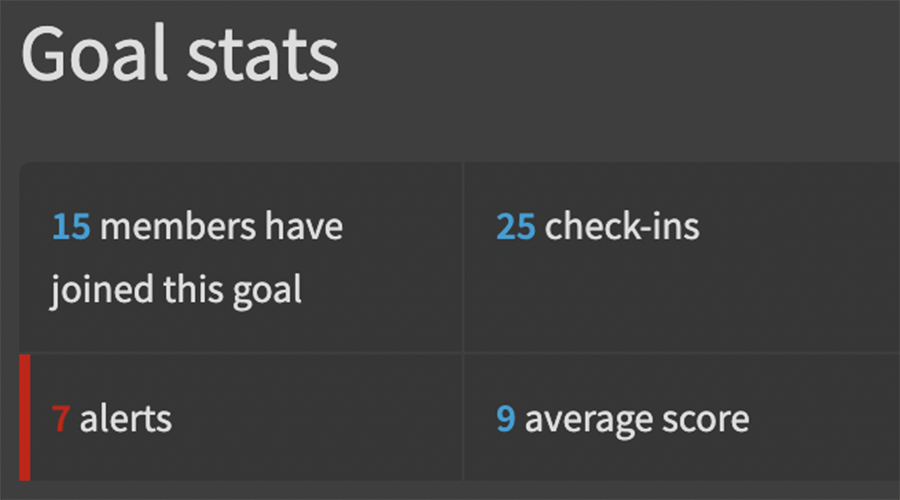 This feature enables members to sign up to goals that can be set by a platform owner who defines a set of goal statements / questions for members to answer at regular ‘check ins’. Members can record their progress and identify ways to make improvements with the help of their community.