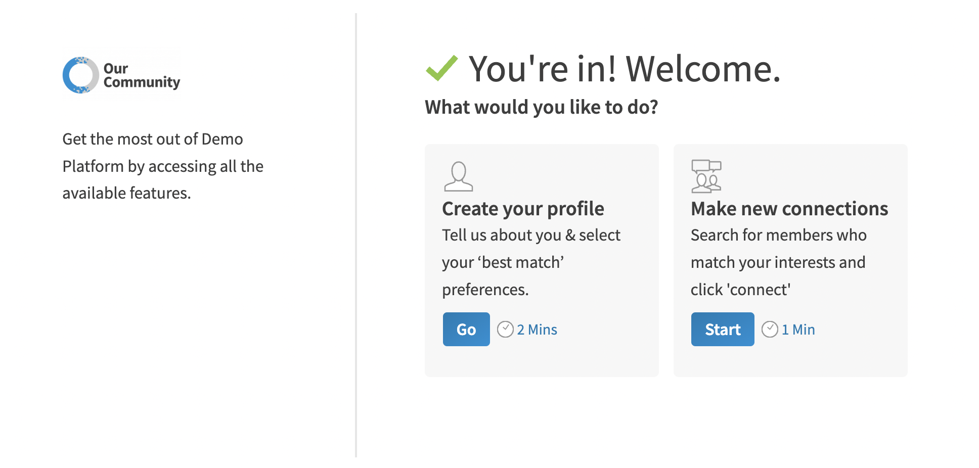 Registered welcome screen CTAs